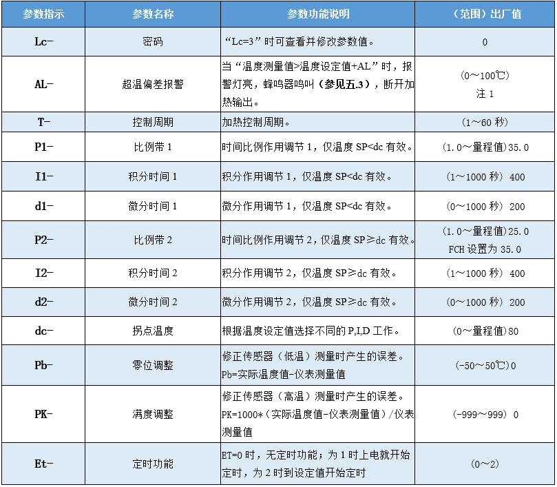注意:為使控制達(dá)到最佳效果,可適當(dāng)修改P(修改范圍一般在“30 ~40”之間),但通常情況下無須修改,直接使用出廠參數(shù)即可。