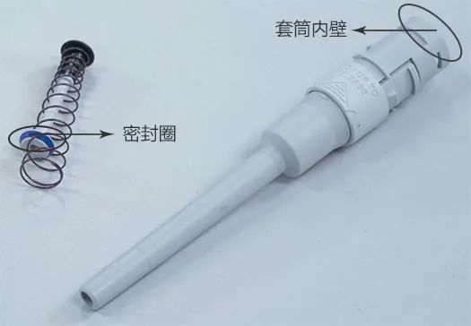 內(nèi)部清潔主要是針對套筒;如果活塞、彈簧等也有污漬,也需要清潔。使用肥皂液、洗潔精或 60 % 異丙醇清潔, 并用雙蒸水淋洗干凈,晾干后再組裝;
