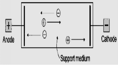 電泳緩沖液相對于固體支持物的移動(dòng)稱電滲。當(dāng)支持物不是絕對惰性物質(zhì)時(shí),常會因?yàn)橹С治锷洗嬖诘碾x子基團(tuán)如羧基、羥基等吸附電極溶液中的正離子,使靠近支持物的溶液層相對帶電,向負(fù)極移動(dòng),反之,若支持物的離子基團(tuán)吸附溶液中的負(fù)離子,則溶液層向正極移動(dòng)。電滲作用會影響顆粒的泳動(dòng)度,因此,在電泳時(shí),電滲小些為好。