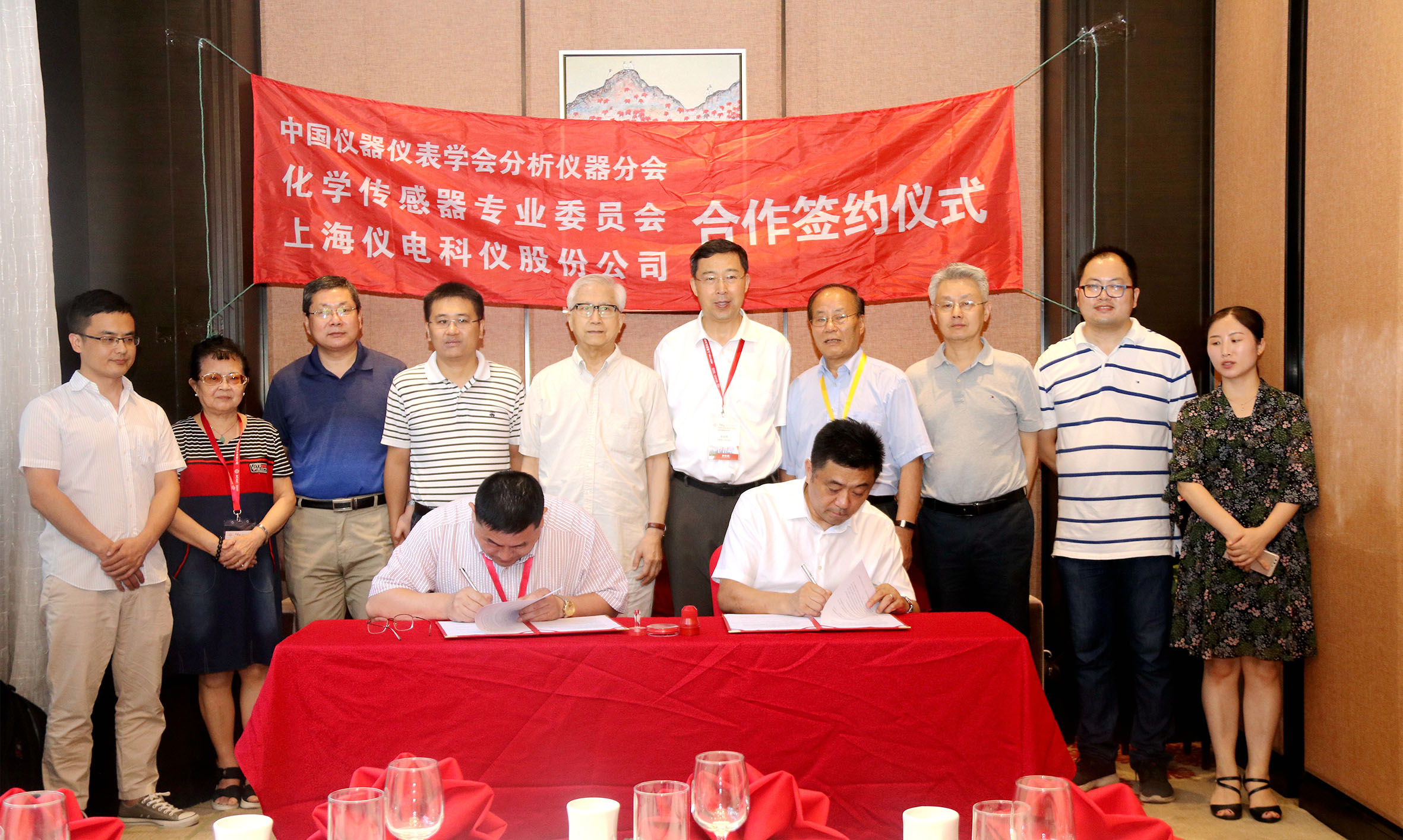 合作協(xié)議的簽訂,由化學(xué)傳感器專業(yè)委員會主任委員、14th SCCS組織委員會主席、湖南大學(xué)吳海龍教授和儀電科儀董事長兼總經(jīng)理湯志東簽署。由化學(xué)傳感器專業(yè)委員會原主任委員、湖南大學(xué)原化學(xué)計量學(xué)與化學(xué)傳感技術(shù)教育部重點實驗室主任、二級教授沈國勵老先生、中國儀器儀表學(xué)會分析儀器分會關(guān)亞風(fēng)理事長、劉長寬常務(wù)副理事長、中國儀器儀表行業(yè)協(xié)會分析儀器分會曾偉秘書長、上海市科委張露路處長、上??茖W(xué)儀器產(chǎn)業(yè)技術(shù)創(chuàng)新聯(lián)盟、上海市分析測試協(xié)會馬蘭鳳秘書長等專家,以及上海儀電科學(xué)儀器股份有限公司副總經(jīng)理殷傳新、金建余,雷磁傳感器公司總經(jīng)理何海東等人共同見證。
