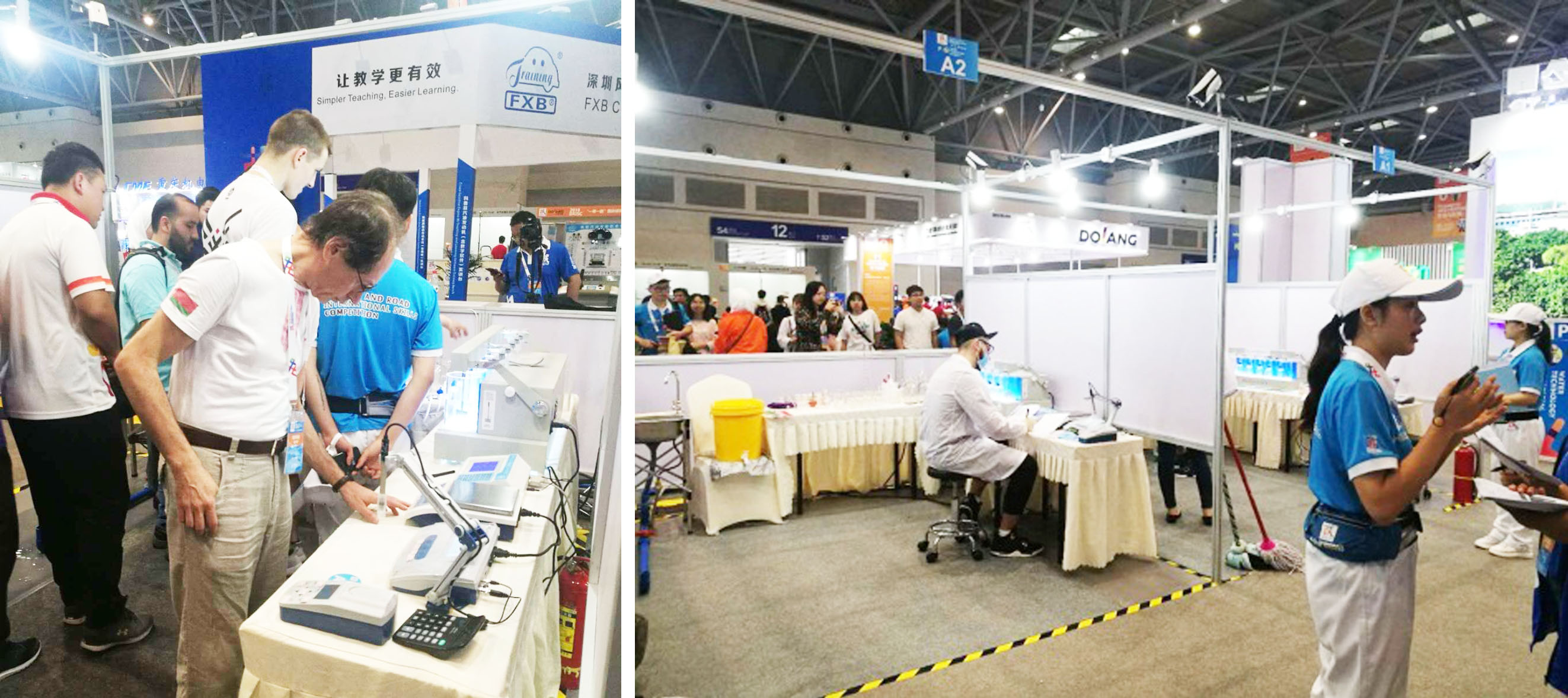 云賽智聯(lián)股份有限公司旗下上海儀電科學(xué)儀器股份有限公司(簡(jiǎn)稱儀電科儀股份)作為本次大賽的水處理技術(shù)項(xiàng)目主要比賽儀器的贊助支持廠家,贊助了“雷磁”品牌的PHS-3E型pH計(jì)和WZB-175型便攜式濁度儀,分別用于pH項(xiàng)目和濁度項(xiàng)目的比賽。為了給來自全球各地的參賽隊(duì)伍提供優(yōu)質(zhì)的賽事服務(wù),保證賽事的順利舉辦。我們的工程師提前抵達(dá)現(xiàn)場(chǎng)為這些儀器進(jìn)行現(xiàn)場(chǎng)調(diào)試,并為參賽選手提供咨詢指導(dǎo),旨在對(duì)水處理項(xiàng)目提供優(yōu)質(zhì)的產(chǎn)品、技術(shù)和服務(wù)。