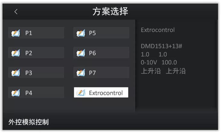一共有8個方案可選擇,其中前7個方案是內控可編程,每個方案最多包含10個步驟;最后一個方案為外控模式。