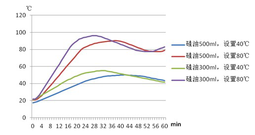 針對大龍儀器的此類產(chǎn)品,我們分別利用水和硅油作為被加熱介質(zhì),在同一溫度條件下,進(jìn)行加熱實驗,所得實驗結(jié)果如圖2-4所示。